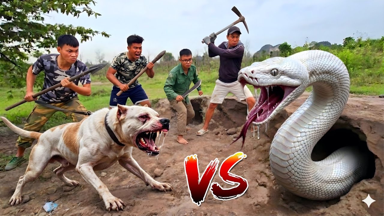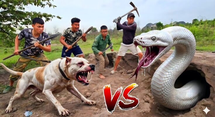 Brave Hunter Use Pitbull To Catch The Giant White Pythons
